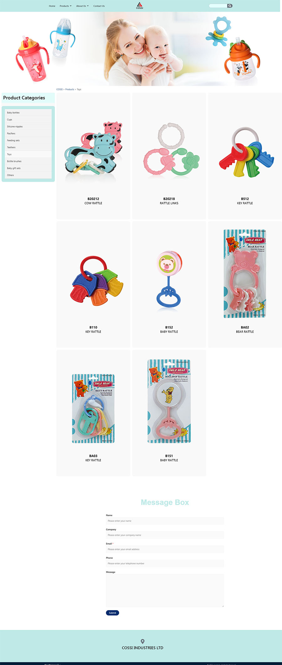 Main products: Baby bottle,silicone nipple,sippy cup,pacifier,fork & spoon,comb & brush,plastic bowl,baby bib,bottle brush,etc.